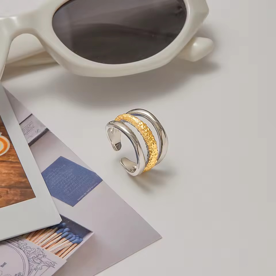 A bold fusion of silver and gold - Kirana symbolises light and strength. Kirana is made to stand out with its modern dual-tone design & textured center band.